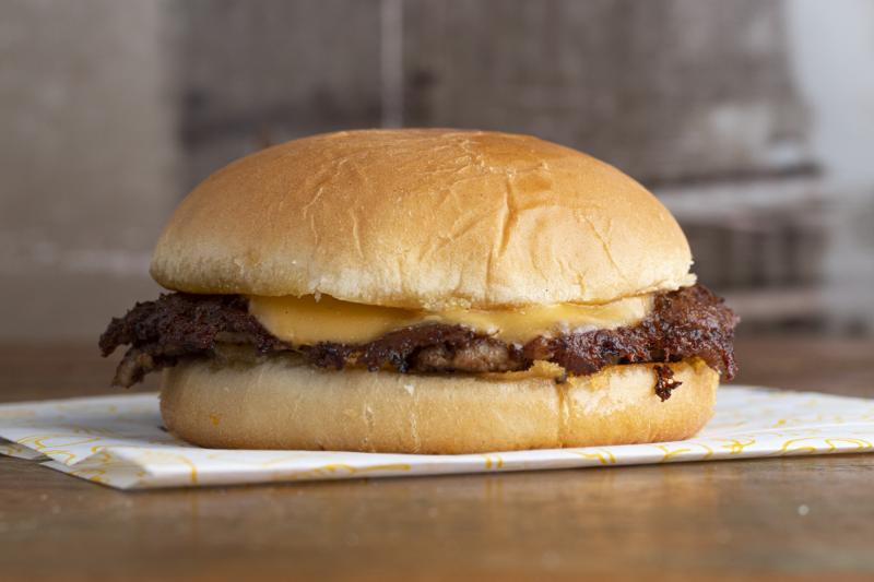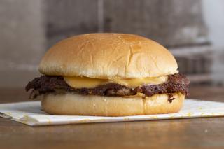 Dois smashs burgers, com crostinhas e queijo american cheese derretido