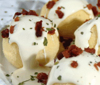 Deliciosa e Suave massa de purê de Batata, recheada com Muzzarela fresca, servido com molho a sua escolha.